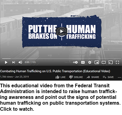 More information can be found on the California Transit Association’s webpage dedicated to Human Trafficking Awareness.