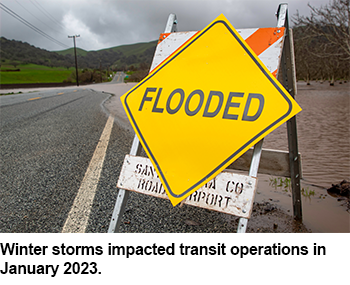 Climate change is a many-headed monster. Californians have been used to worrying about drought, wildfires, and power outages in recent years. Record-setting storms in the winter of 2022-2023 have reminded us that at the turn of a season, severe flooding can be just as much of a hazard to life, private property, and public infrastructure. The winter storms underscore the need for transit systems to increase their resilience in the face of all forms of climate impacts.