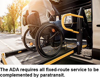 “Serving passengers with physical, cognitive, and developmental disabilities in a fair and equitable way is the core of the Americans with Disabilities Act (ADA),” explains Tiffani Fink, CEO of Paratransit, Inc., a private paratransit services provider in the Sacramento region. “In the early days of the ADA, this was easily translated to mean lift-equipped vehicles and complementary paratransit service.” The ADA requires any agency providing fixed-route service to provide complementary paratransit service.