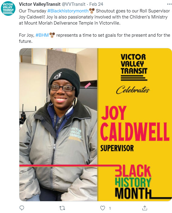 Victor Valley Transit Authority (VVTA) Celebrates Black History Month