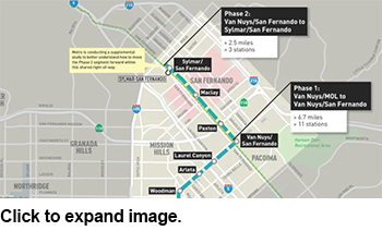 Los Angeles County Metropolitan Transportation Authority (LA Metro) has received a letter of intent from the Federal Transit Administration (FTA) announcing its intention to obligate nearly $1 billion in future federal funds for the first phase of Metro’s new, 9.2-mile East San Fernando Valley Light Rail Transit Project that will connect the Metro G Line (Orange) Station in Van Nuys with the Metrolink Station in Sylmar/San Fernando.