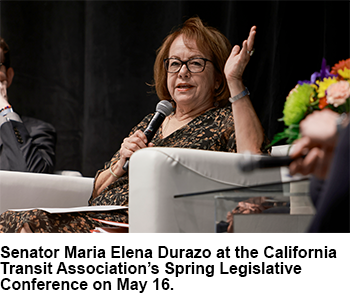 “We’ve had our challenges over the years, but this year is going to be a really, really important year for us,” said Karen King, CEO of Bakersfield’s Golden Empire Transit District and the Chair of the Association, echoing Pimentel’s sentiments at the annual Spring Legislative Conference on May 16. She urged Association members to contact legislators and help them understand how critical and essential transit is to constituents in their districts – and why these constituents will expect legislators to do their part to stabilize transit operations funding: “Put a local face to transit and share these important messages with policymakers, and highlight how we as an industry are meeting the moment.”