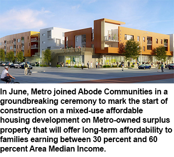 “Transit-oriented development on Metro-owned land near transit stops helps families reduce the two largest household expenses – housing and transportation,” observes Metro CEO Stephanie N. Wiggins. “How we use our land can help make the difference between a thriving community for all versus one that doesn’t work for low- and moderate-income families.”